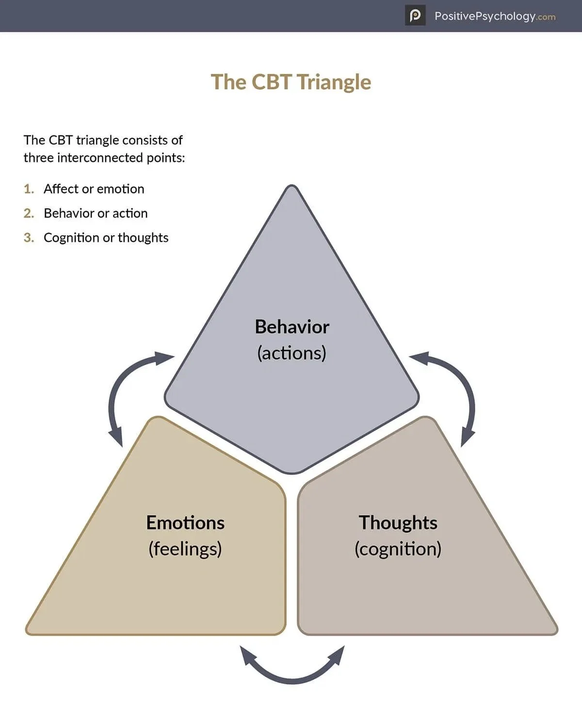 The CBT triangle shows the connection between thoughts , feelings and behaviors *